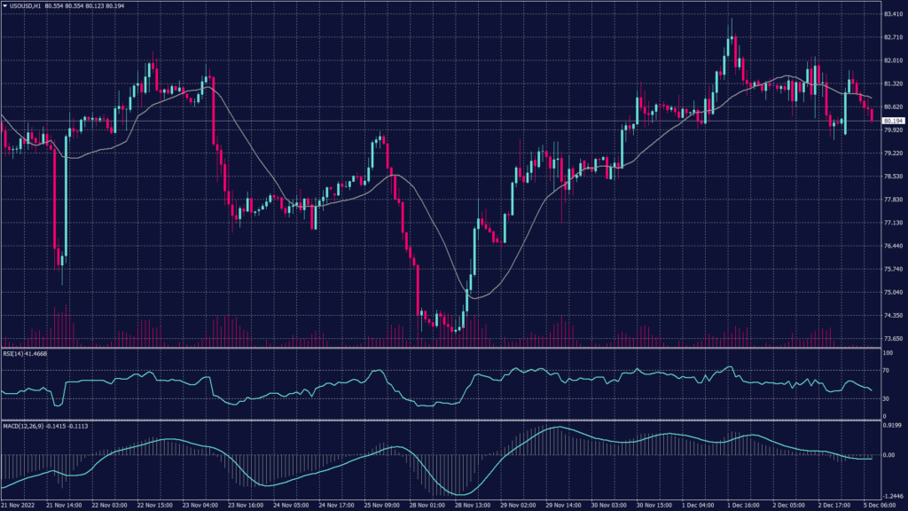 يُظهر مخطط خام غرب تكساس الوسيط اتجاهاً غير حاسم على الرسم البياني لكل ساعة، مما يفتح فرصة للتقلبات بين 80 دولاراً و83 دولاراً للبرميل. مع ذلك، يظهر الرسم البياني اليومي استمراراً في الاتجاه الهبوطي الذي يستهدف 77 دولاراً للبرميل.