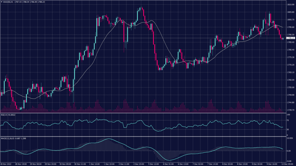 يظهر على الرسم البياني للأربع ساعات والرسم البياني اليومي احتمالية عالية لاستمرار الاتجاه الصعودي على الرغم من قراءات المؤشرات الفنية. ومع ذلك، يُظهر مؤشر القوة النسبية RSI و MACD احتمالية انخفاض طفيف إلى 1,765 دولاراً للأونصة.