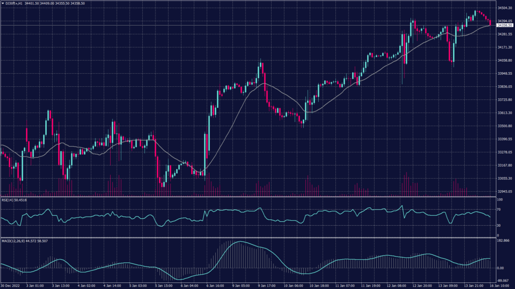 حافظ مؤشر داو جونز على مكاسبه يوم الجمعة الماضية وارتفعت قيمة المؤشر حوالي 2% في تداولات الأسبوع الماضي ، حيث ارتفعت شهية المخاطرة بعد بيانات التضخم الجيدة ورهان السوق على تباطؤ رفع وتيرة أسعار الفائدة من جانب البنك المركزي الفيدرالي وقد سعر السوق رفع 25 نقطة أساس في اجتماع الفيدرالي في الأول من فبراير المقبل ، تغلق الأسواق الأمريكية اليوم في عطلة يوم مارتن لوثر كينج.