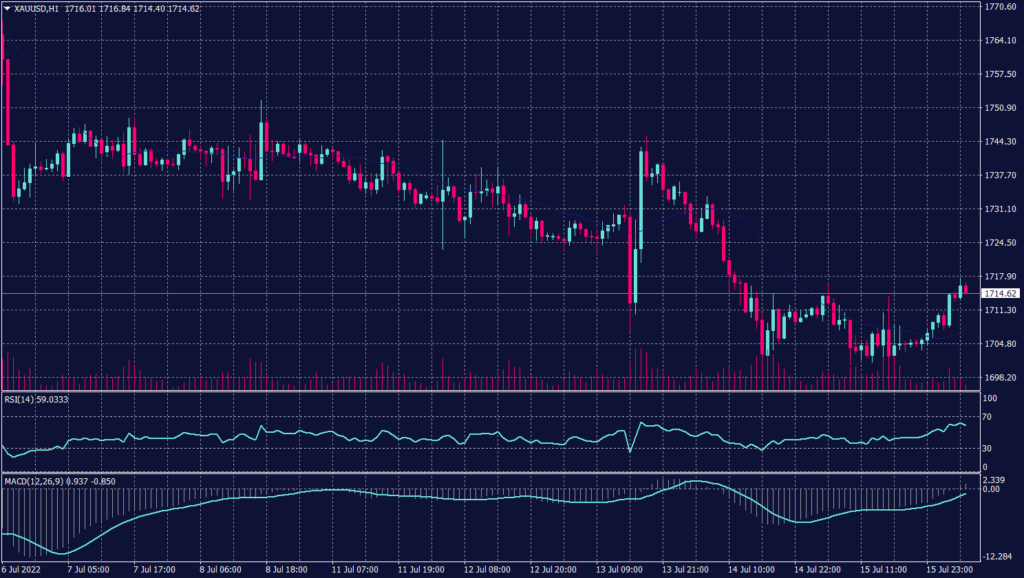 Gold bounced back from the support at $1,710 to trade around $1,715 per ounce during the Asian session. However, the market discounted the anticipations of rate hikes of 100 bp during next Fed meeting.