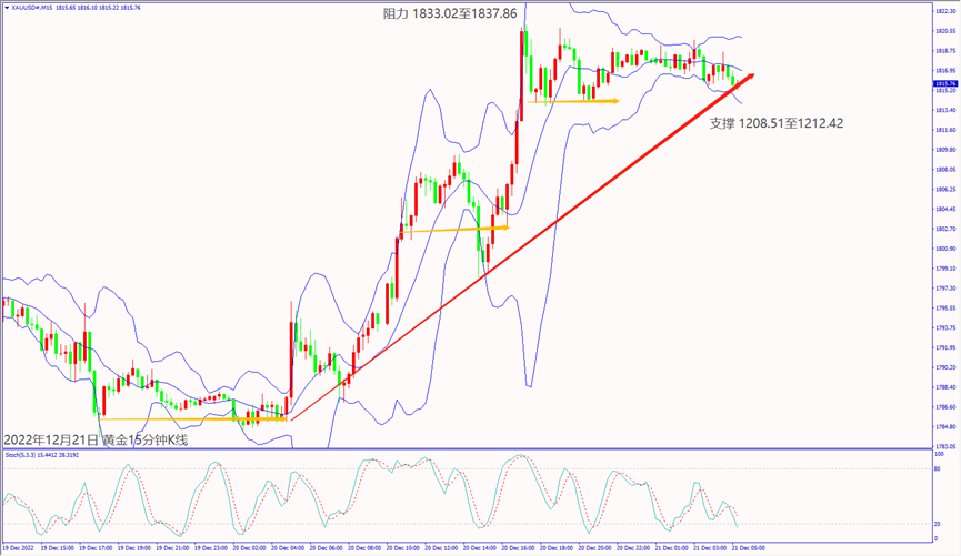 昨天(20日)受到美元指数下跌影响,市场回补黄金带动价格上涨约35美元。预期今天(21日)美国公布经济数据大都不佳利淡美元,黄金价格若守住小时布林带下轨线1814美元,建议可偏多操作。