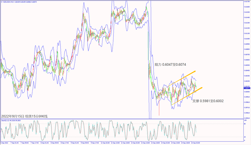 日级别线图,十字星反转信号,守住0.6000关口,有望出现反弹;15分钟K线,出现上升矩形,守住趋势线,不排除挑战起跌阻力。