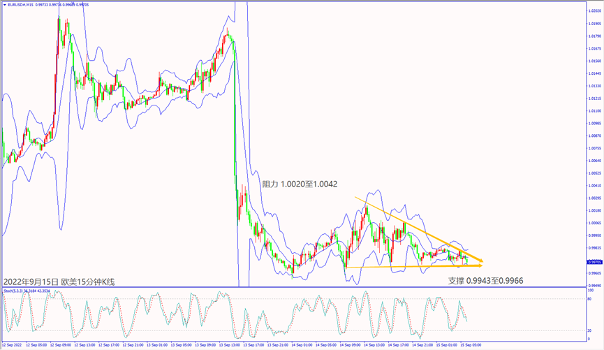 昨天(14日)欧盟委员会主席冯德莱恩表示正在讨论天然气价格上限,以及提出中小企业的救济计划,利好欧美和镑美皆涨逾65个点,也让美元指数回落至109.40附近整理。日本财务大臣暗示政府恐干预日元下跌,造成美日反转大跌约240个点。晚间美国公布PPI数据利好,以及美国众议院官员对临时拨款法案通过表示乐观,利好美元指数止跌上涨约40个点,带动美日和美加皆涨超55个点,也让欧美下跌吞噬当日涨势。
