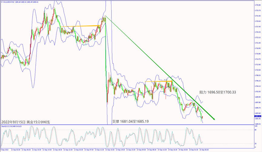 昨天(14日)美元指数震荡,美债收益率止跌反弹,也让黄金价格反转下跌约15美元,尾盘守在1695美元附近整理。预期今天(15日)美国公布经济数据大都利好,黄金价格冲不过1700关口,建议可短空操作。