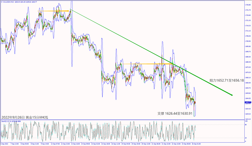 上周五(23日)受到美元指数大涨影响,黄金价格从当日高点下跌约35美元,尾盘守在1645美元附近整理。预期今天(26日)欧洲央行行长拉加德在欧洲议会经济与货币事务委员会的听证会重申加息抑制通胀,黄金价格若突破小时布林带上轨线1641,建议可短多操作。