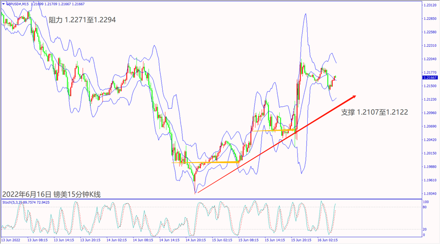 今天(16日)清晨美联储调降预测今明两年GDP增长,预期市场避险资金可能流向日元带动上涨,美日冲不过5日均线134.51,建议可短空操作。预期今天瑞士利率决议宣布加息,欧美一旦突破5日均线1.0440,建议可短多操作。预期今天英国公布利率决议,镑美若守住小时布林带下轨线1.2122,建议可短多操作。