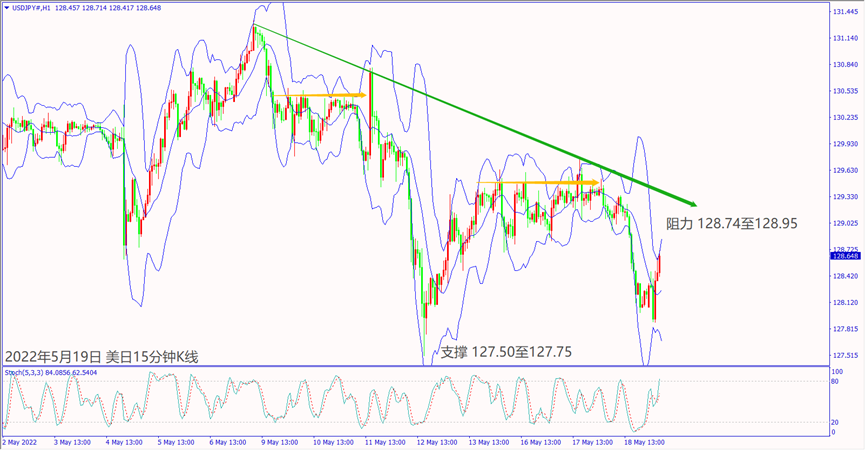 昨天(18日)早上美联储埃文斯对于加息表示乐观,带动美元指数出现反弹。欧洲央行管委雷恩表示可能在夏季加息,以及加拿大公布CPI数据利好造成美元下跌,一度带动欧美和镑美反弹。晚间美国财长耶伦称不认为经济将陷入衰退,以及多位美联储官员预期下一次会议加息50个基点,带动美元指数扩大上涨约70个点,带动美加上涨近百点,造成欧美、镑美、澳美和纽美皆跌逾80个点。日本经济产业省公布汽油补贴利好日本经济,美日反转暴跌约150个点。