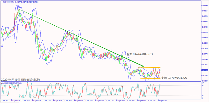昨天(18日)俄羅斯對烏東採取新攻勢,美國國防部官員透露對烏克蘭運送軍援,早上亞洲市場回補美元帶動指數上漲約20個點。今天(19日)早上澳洲聯儲會議紀要稱澳大利亞的財務狀況仍然非常寬鬆,造成澳美從早上高點轉空下跌。預期今天世界經濟展望報告對戰爭衝擊經濟示警,可能造成歐美和鎊美擴大跌勢。
