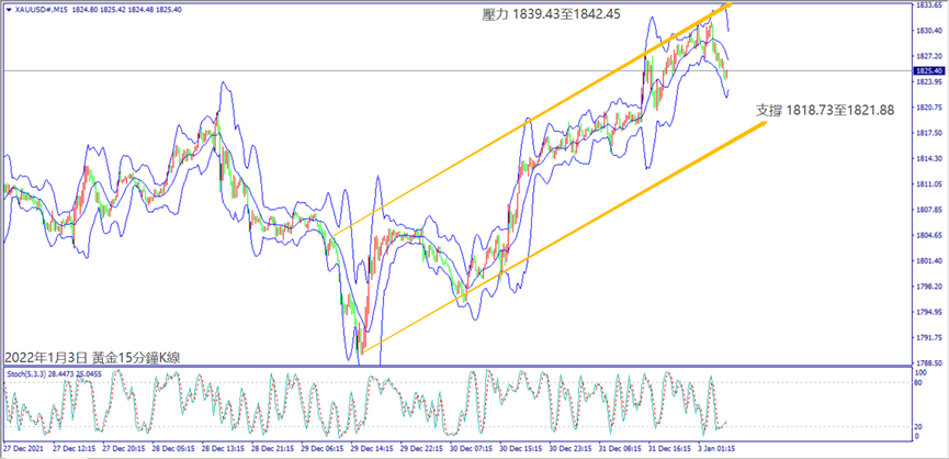 上周美國公佈新冠確診人數造成住院人數激增,美元指數大跌推升黃金價格再創一周新高。週末歐美公佈新冠確診人數皆再度大增,避險資金有望推升黃金漲勢。預計美國公佈經濟數據利好美元,黃金守住小時布林帶下軌線1821.88美元,建議可偏多操作。