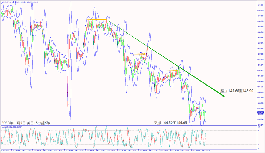 預期今天(9日)美國中期選舉仍然混亂,市場資金可能流向日元進行避險,美日一旦跌破小時布林帶下軌線145.23,建議可短空操作。預期今天瑞典央行行長重申加息抑制通脹利好歐元,歐美一旦突破小時布林帶上軌線1.0095,建議可短多操作。預期今天多位美聯儲官員表示維持加息利好美元,鎊美若摜破小時布林帶下軌線1.1521,建議可短空操作。